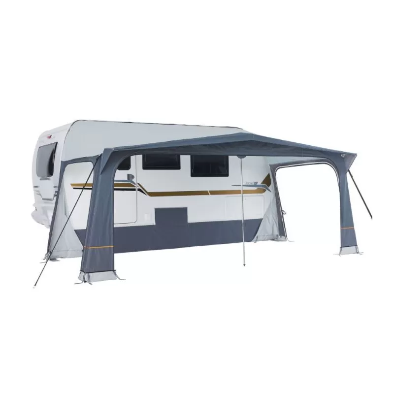 Auvent toutes saisons à armature facile à assembler grâce à ses bagues de serrage rapide avec une profondeur de 2,50 m pour toutes les caravanes rigides désireuses de s’évader par tous les temps.