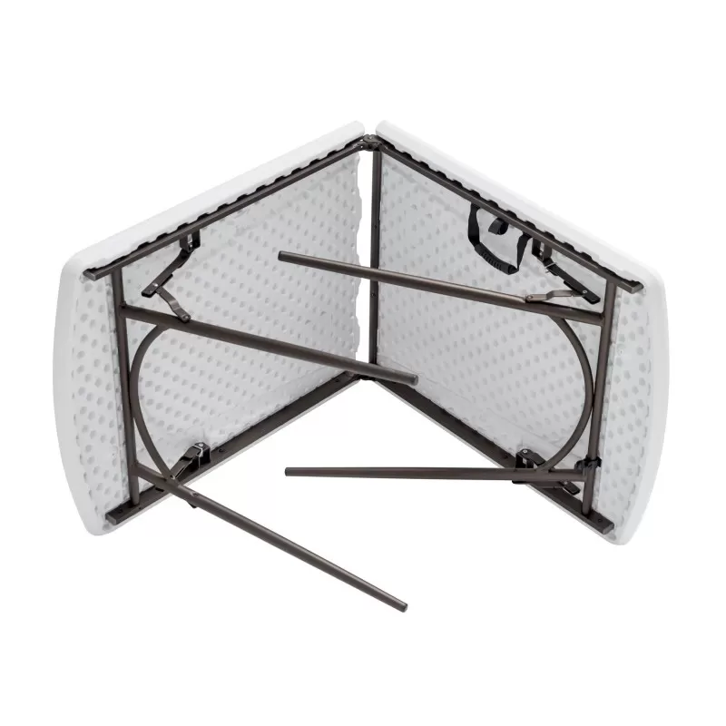 Son armature ergonomique vous permet d’avoir plus d’espace sous la table pour vos jambes notamment pour les personnes assises en bout de table, argument non négligeable pour une table de camping. Peu encombrante, les pieds se replient et le plateau peut alors facilement se glisser derrière une cloison, sous un lit ou sur une paroi de soute dans votre camping-car ou caravane.