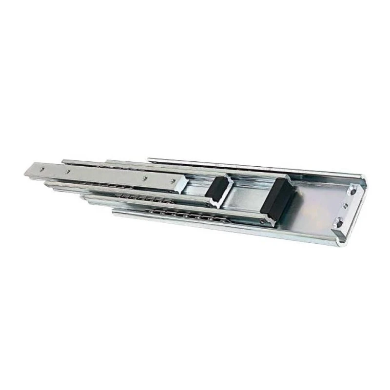 Avec son extension jusqu’à 1050 mm et sas capacité de charge de 200 kg, cette coulisse est conçu pour supporter des plateaux assez lourds comme par exemple dans les soutes de camping-cars ou caravanes. Très robuste donc, il est principalement utilisé dans les fourgons aménagés pour la conception d’extension de cuisine ou de coffre de rangement à l’arrière.